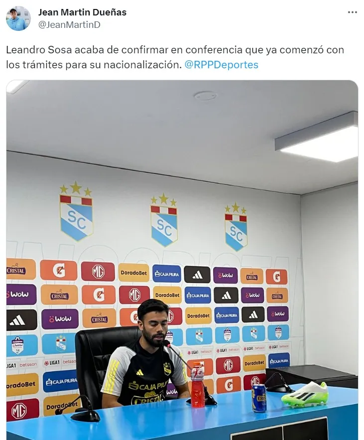Jean Martín Dueñas al respecto escribió en su Twitter: “Leandro Sosa acaba de confirmar en conferencia que ya comenzó con los trámites para su nacionalización”.