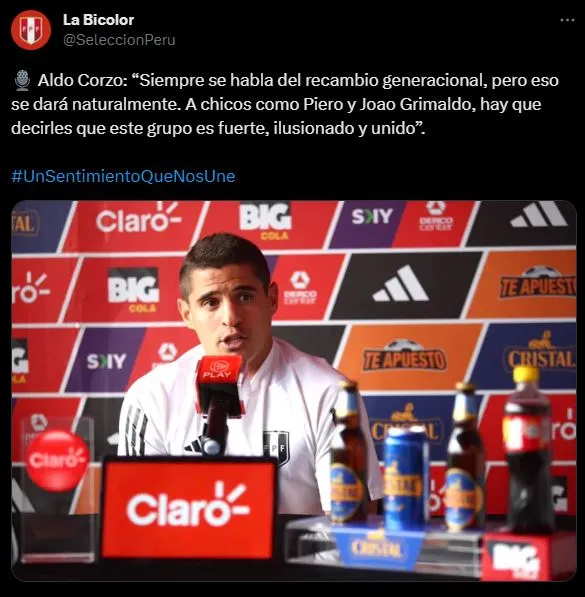 El capitán de Universitario de Deportes, charló con los medios de comunicación, y destacó el nombre de dos pichones de crack: “Siempre se habla del recambio generacional, pero eso se dará naturalmente. A chicos como Piero y Joao Grimaldo, hay que decirles que este grupo es fuerte, ilusionado y unido”.
