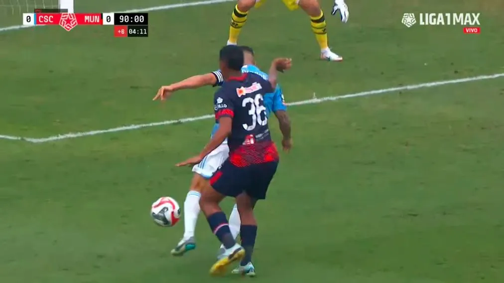 Sin embargo, ya cerca del final del compromiso, ocurrió una jugada muy polémica y confusa para muchos. El árbitro principal, Sebastián Lozano, sancionó un penal a favor de los rimenses después de que Yoshimar Yotún cayera dentro del área del cuadro de la Franja.