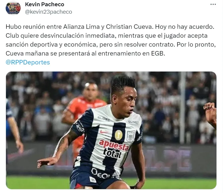 “Hubo reunión entre Alianza Lima y Christian Cueva. Hoy no hay acuerdo”, comenzó el hombre de prensa.