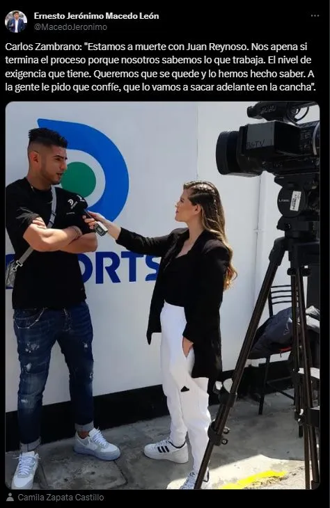 Es lo que mencionó El Káiser ante la periodista de dicho canal, Camila Zapata. A quien le mostró su disconformidad por todo lo que pasa ahora en VIDENA. Carlos Zambrano vivió el partido repleto de sentimientos junto a sus compañeros en la zona técnica. No vio minuto alguno por decisión de Juan Reynoso, pero eso no es un problema, él suma desde donde esté.