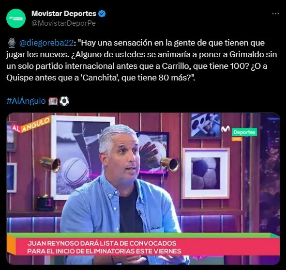 Uno de los primeros programas en mencionarlo como prioridad, es Al Ángulo de Movistar Deportes, ahí se planteó como materia principal este ambiente. Poniendo 2 nombres jóvenes, junto a otros 2 consolidados por su pasado reciente con La Blanquirroja.