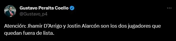 “Atención: Jhamir D’Arrigo y Jostin Alarcón son los dos jugadores que quedan fuera de lista”, expresó el periodista deportivo del Diario Líbero. Entonces, Juan Reynoso apelará a la experiencia de los jugadores que quedan. Paraguay en este momento se está enterando quienes quedan fuera de competencia.