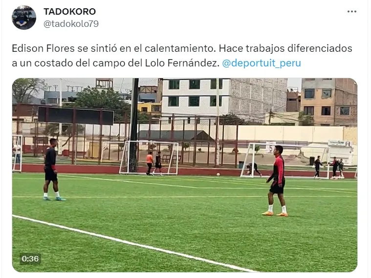 Wilmer Robles también informó sobre la situación: “Edison Flores se sintió en el calentamiento. Hace trabajos diferenciados a un costado del campo del Lolo Fernández”.