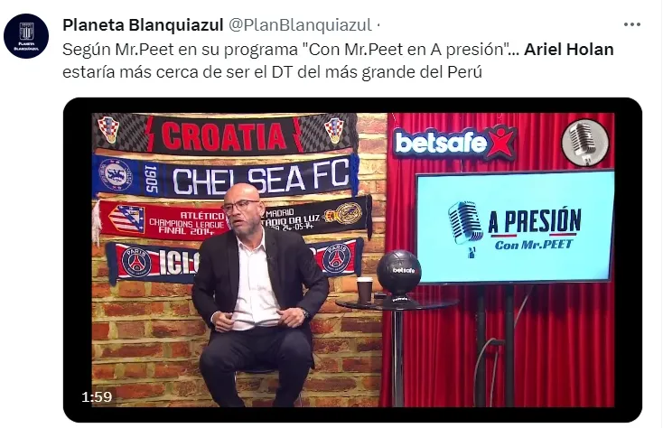 Así pues, el plantel blanquiazul estaría muy cerca de concretar el fichaje del estratega argentino Ariel Holan. Actualmente sin club tras su salida de la Universidad Católica, el DT tiene todo para llegar a La Victoria.