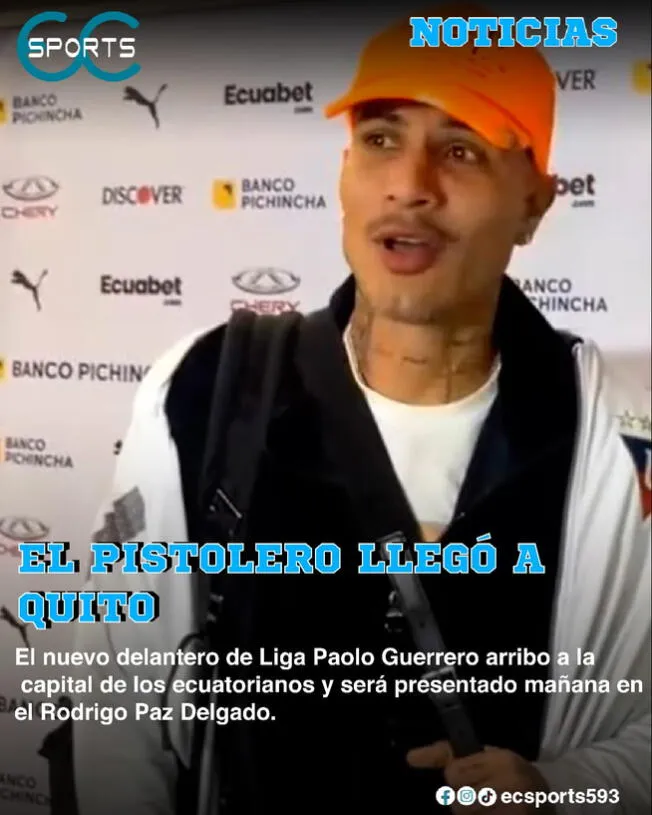 Llegando con ropa deportiva, una gorra y la camiseta de Liga de Quito, Paolo Guerrero ya se encuentra en su nueva ciudad y la prensa hizo ruido.