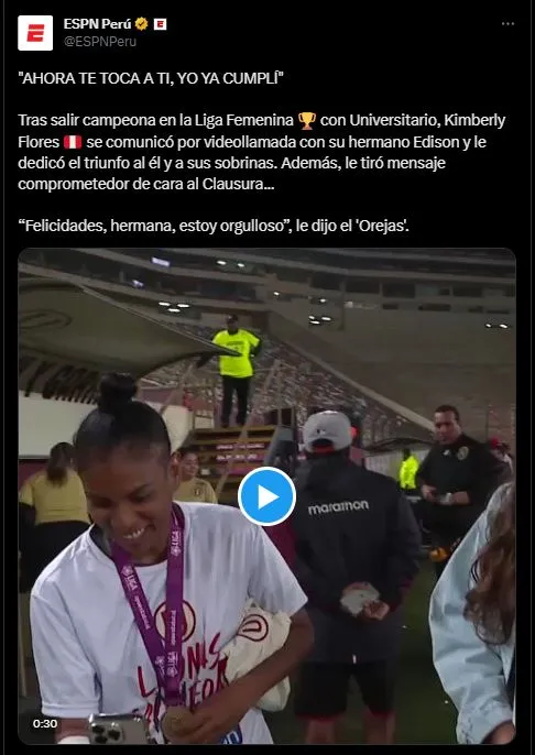 Una de ellas, se tomó el tiempo de saludar a su hermano, quien es el crack del plantel principal. Kimberly Flores utilizó la videollamada para comunicarse con El Orejas, y recibir las felicitaciones del caso. Aparte, hubo unas palabras de la talentosa profesional hacia el crack.
