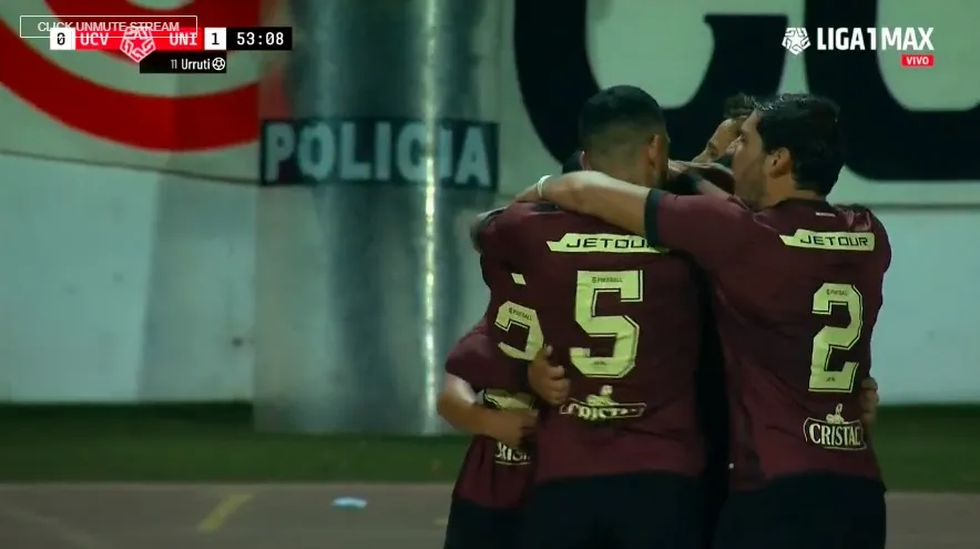 Sin embargo, en un tiro libre a favor de la visita llegó el primer tanto del compromiso. Gracias a Luis Urruti, luego de que su remate tome un rumbo que terminó dentro del arco de la UCV. Esto hizo poner a feliz a todos los hinchas cremas, que esperan que su equipo se traiga los tres puntos de Trujillo.