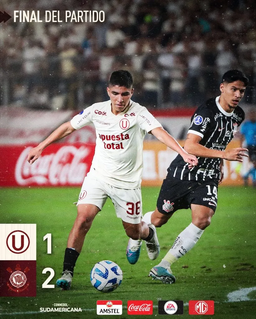 Universitario de Deportes perdió por 2-1 ante Corinthians en el estadio Monumental de Ate, por los playoffs de la Copa Conmebol Sudamericana. Los cremas estaban empatando 1-1 parcialmente, pero en el resultado global terminó 3-1.