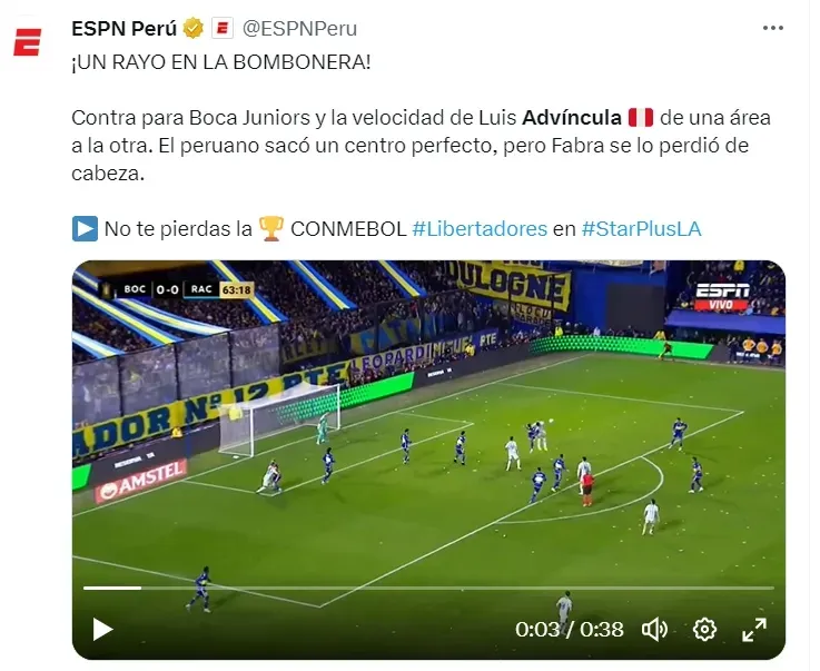 Al final Boca empató sin goles ante Racing por la ida de los cuartos de final de la Copa Libertadores, mientras en el recuerdo de Advíncula quedará ese sprint que se metió mientras muchos lo compararon con Usain Bolt.