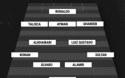 Al Aqidi; Al Ghanam, Alamri, Álvaro, Konan; Luiz Gustavo, Al Khaibari; Ghareeb, Ayman, Talisca; Cristiano Ronaldo.