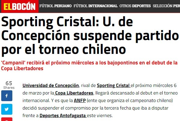 Debido a este suceso Concepción intentará conseguir algunos duelos amistosos para recibir en forma a su rival peruano y comenzar de la mejor manera el campeonato internacional.