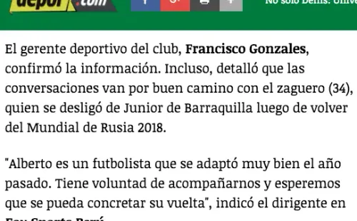 Hace algunas semanas, Alberto Rodríguez rescindió su vínculo con Junior, de Barranquila, ya que no logró colmar con la expectativas de los directivos cafeteros.