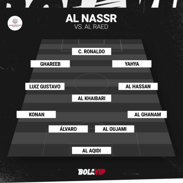 El interino Dinko Jelicic no le salen las cosas y hará variantes para buscar su primer triunfo. Así, Nawaf Al Aqidi; Sultan Al Ghannam, Ali Al Oujami, Álvaro González, Ghislain Konan; Ali Al Hassan, Abdullah Al Khaibari, Luiz Gustavo; Ayman Yahya, Cristiano Ronaldo yAbdulrahman Ghareeb integran el once titular de Al Nassr.