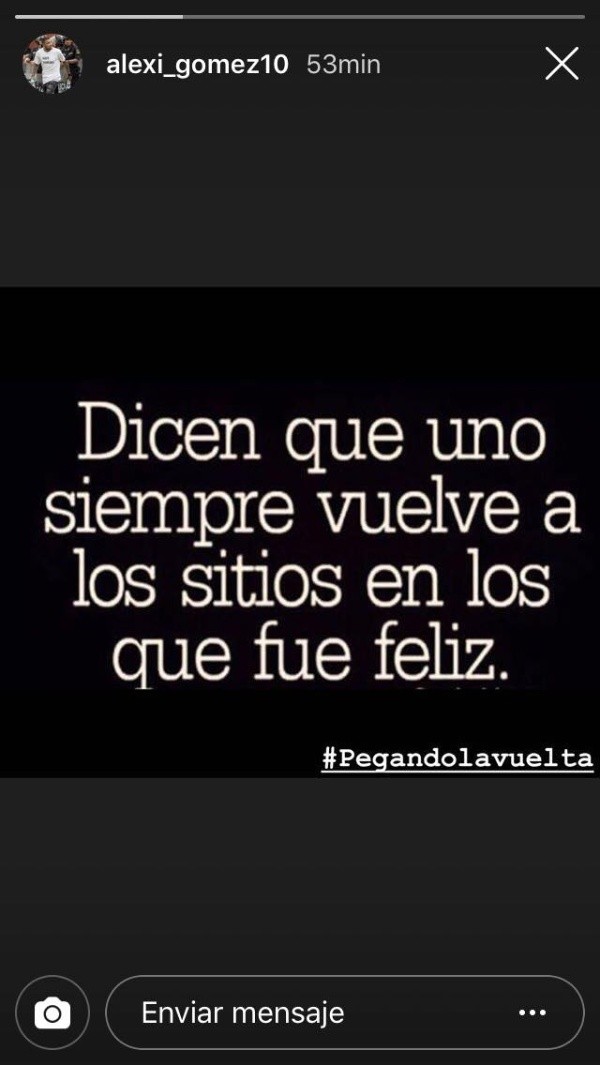 “Dicen que uno siempre vuelve a los sitios en los que fue feliz. Pegando la vuelta”, fue lo que escribió Gómez, dejando entrever un mensaje entre líneas, en relación a un posible regreso a la “U”.