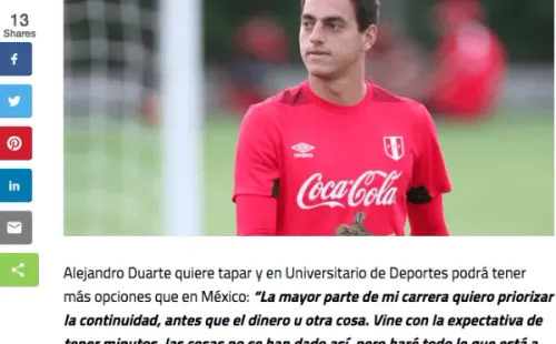Luego, Duarte confesó:“La mayor parte de mi carrera quiero priorizar la continuidad, antes que el dinero u otra cosa. Vine con la expectativa de tener minutos, las cosas no se han dado así, pero haré todo lo que está a mi mano para que esta situación cambie antes de diciembre porque no me gustaría irme sin haber podido tapar”.