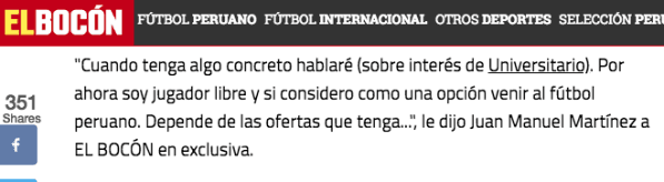 Durante los últimos días, comenzó a vincularse el nombre de Juan Manuel Martínez, exjugador de Independiente y Boca Juniors,con Universitario de Deportes.
