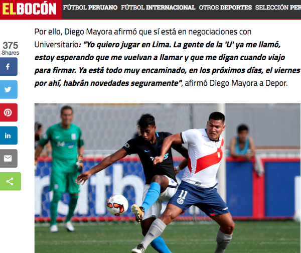 Universitario de Deportes se encuentra en la búsqueda de un centrodelantero que logre convertirse en el goleador del equipo. En la lista de principales candidatos se encuentra Diego Mayora, que actualmente milita en Unión Comercio.