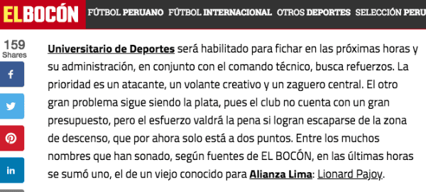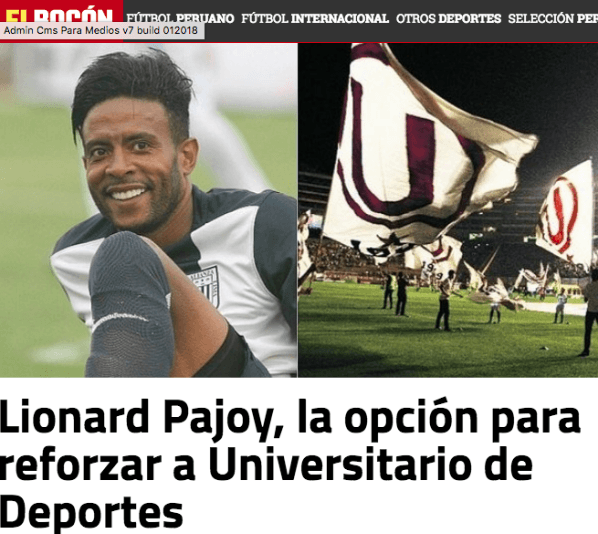 Incluso, uno de los futbolistas que estaría en los planes de los Cremas sería nada menos que Lionard Pajoy, exfutbolista de Alianza Lima.