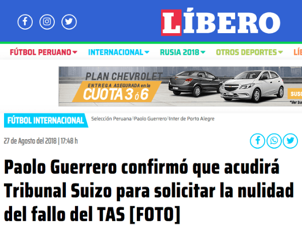 PaoloGuerrero vive horas de incertidumbre respecto a su futuro, pero lo cierto es que el jugador peruano agotará las alternativas para que el Tribunal Federal Suizo revoque su sanción.