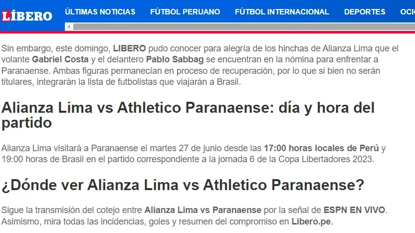 No obstante, según diario Líbero dio a conocer que el volante Gabriel Costa y el delantero Pablo Sabbag, están convocados para el choque contra Paranaense. Recordemos que ambos elementos, estaban recuperándose de la lesión que tuvieron.