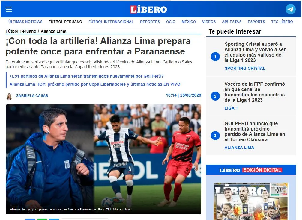 De esta manera lo cuenta el medio de comunicación: “Es por eso que el popular ‘Chicho’ sacará toda su artillería pesada para lograr la hazaña ante el equipo brasileño, donde podrá volver a contar con Bryan Reyna, Christian Cueva y Carlos Zambrano, luego de su paso por el continente asiático con la selección peruana. Con el regreso de los jugadores en mención, el director técnico podrá armar un gran once estelar”.
