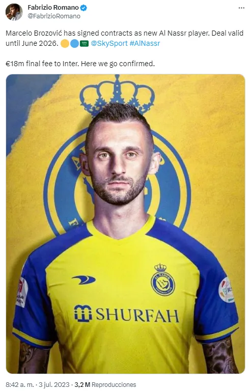 Este lunes 3 de julio, Fabrizio Romano ha confirmado que el trato entre el croata y el club de Medio Oriente ha sido firmado. Los saudíes finalmente han alcanzado el acuerdo tanto con el volante como con Inter de Milán.