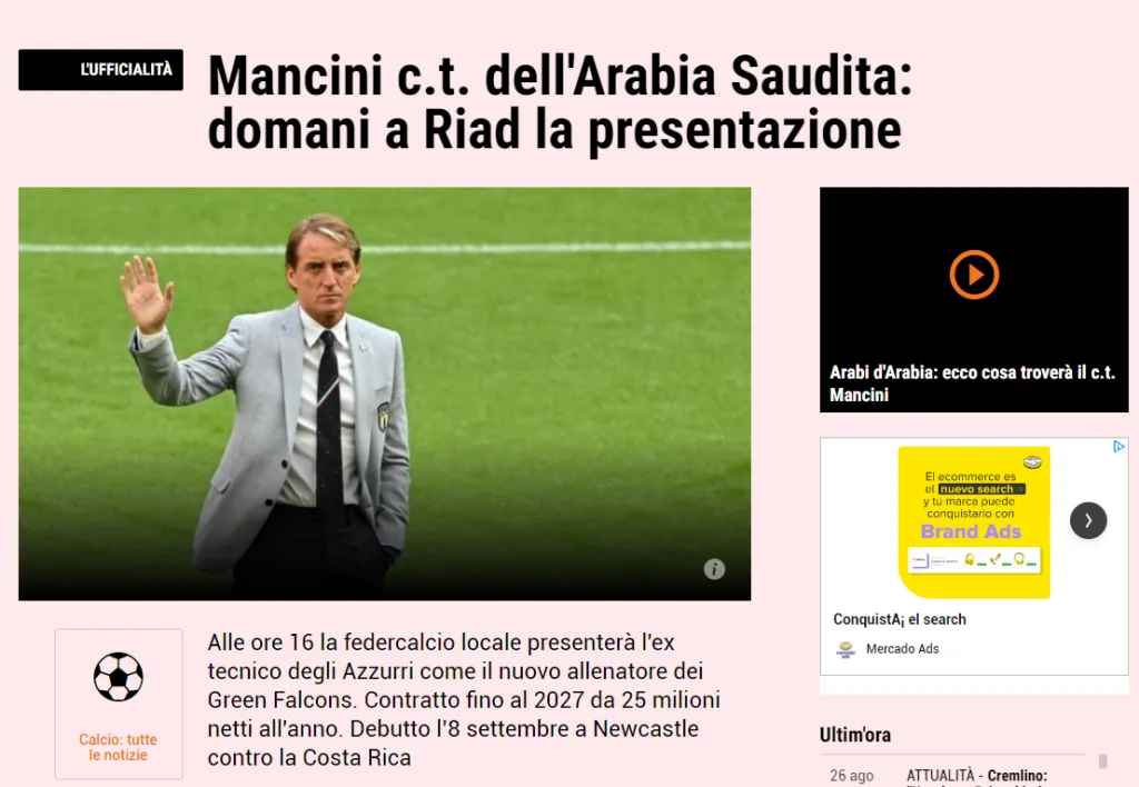 La fuente asegura que Mancini ha cerrado el acuerdo para dirigir a Arabia Saudita hasta el año 2027. El entrenador embolsará la insólita cantidad de 25 millones de euros netos. Se espera su debut para el próximo 8 de septiembre ante Costa Rica.