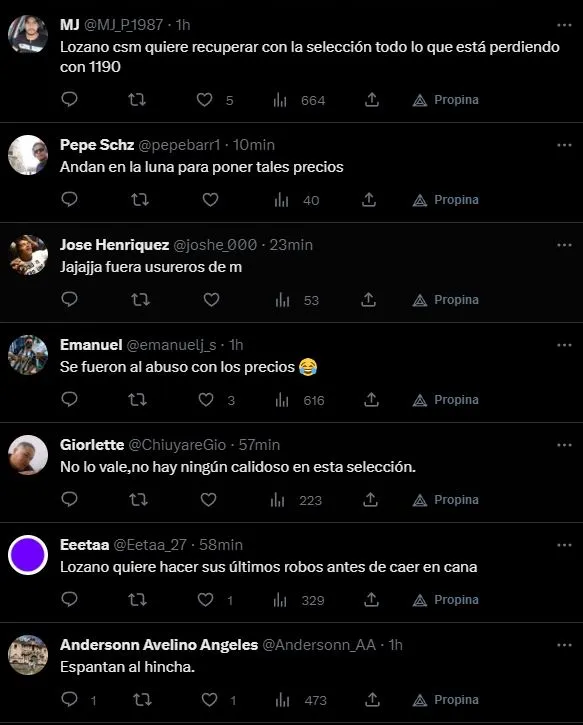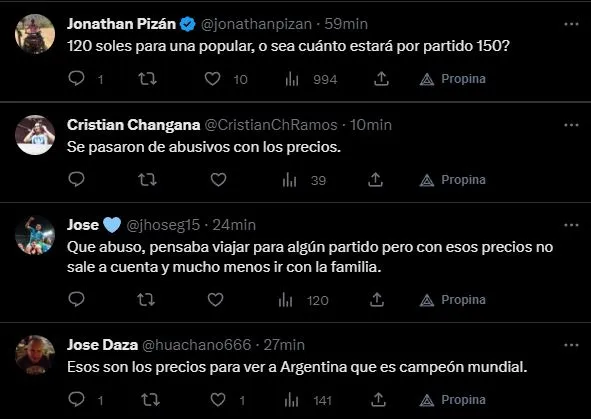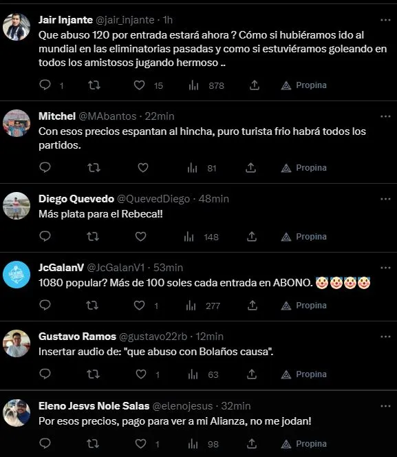 La gran mayoría de los hinchas expusieron su idea, la cual está basada en el precio exagerado para ver a la Selección Peruana. A comparación de lo que fue el Abono para las Eliminatorias del Mundial Qatar 2022, los precios aumentaron de forma impresionante. Acá, como casi siempre, el cliente siempre tiene la razón.