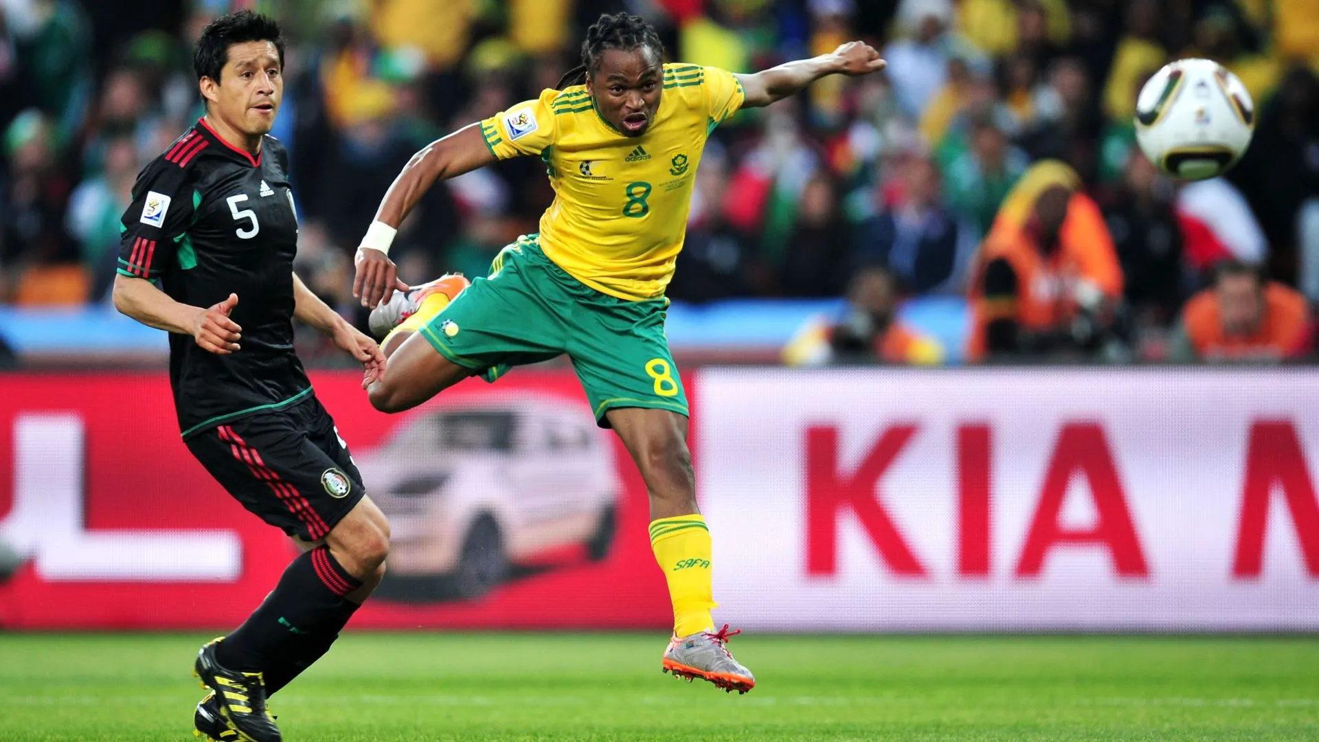 El zurdazo de Tshabalala en el partido inaugural del Mundial 2010 es uno de los goles más recordados de las últimas décadas: potencia, precisión y un estallido emocional que recorrió todo el planeta. Durante esa Copa, el mediocampista sudafricano mostró energía, despliegue y carácter, convirtiéndose en uno de los símbolos del anfitrión y en una figura inesperada para millones de espectadores.