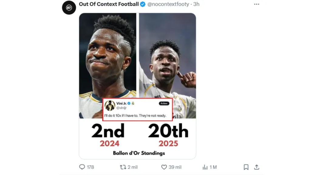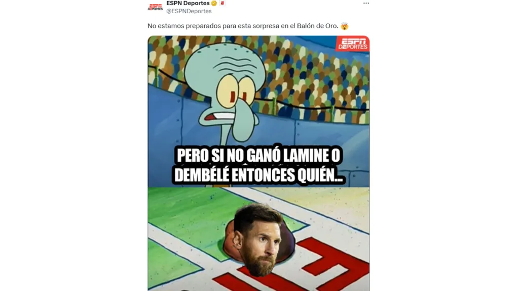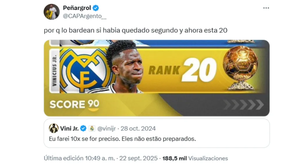 Este lunes 22 de septiembre de 2025 se entregó el Balón de Oro 2025 con varias sorpresas. Las redes sociales, como siempre atentas, estuvieron haciendo los mejores memes de la entrega con varios protagonistas como Vinicius Júnior, Mbappé, Dembélé, Lamine Yamal y otros.