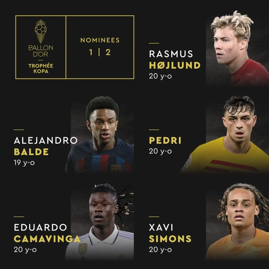 Ahora, a solo semanas de conocer al nuevo Balón de Oro, se da a conocer la lista de los 10 nominados al Trofeo Kopa. Los equipos con más nominados son FC Barcelona con Pedri, Gavi y Alejandro Balde, y Real Madrid con Jude Bellingham y Eduardo Camavinga.
