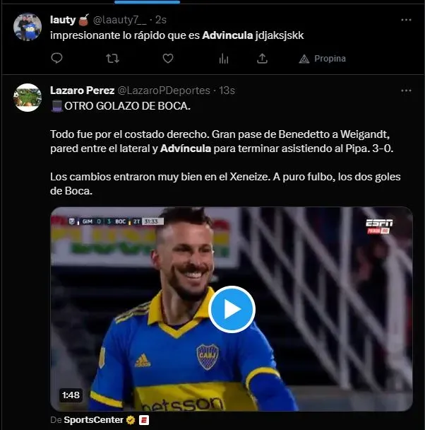 Luis Advíncula después fue determinante, porque se hizo presente en el tercer gol de Boca Juniors. El cual fue anotado por Darío Benedetto, pero antes, el peruano fue muy importante en el traslado, presión y otros aspectos previos. Al punto de ser elogiado por los hinchas.