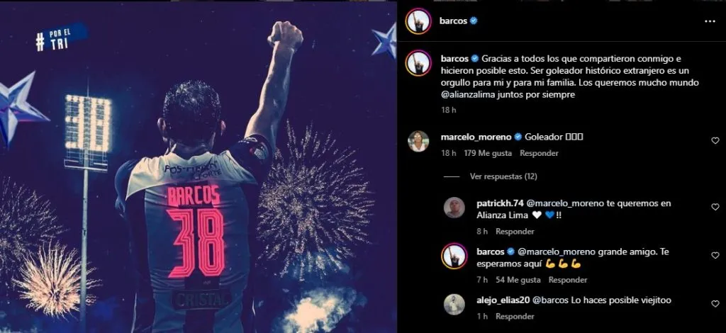 “Gracias a todos los que compartieron conmigo e hicieron posible esto. Ser goleador histórico extranjero es un orgullo para mí y para mi familia. Los queremos mucho mundo Alianza Lima, juntos por siempre”. Sostuvo el Pirata con una foto con el número 38, los goles marcados en tienda íntima.