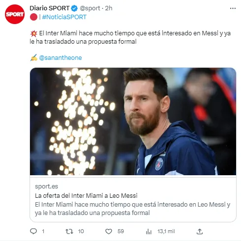 Según informa el diario Sport, Inter Miami se ha sumado a los clubes que han presentado una oferta para el argentino. El club de la MLS estaría poniendo 50 millones de euros sobre la mesa por temporada, con un contrato de 4 años.