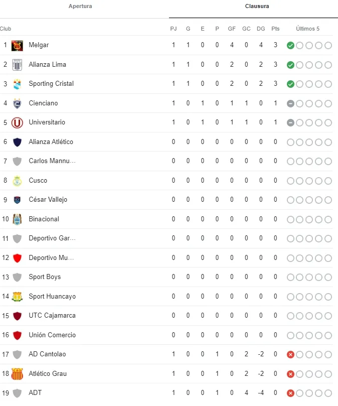 Perfilándose como los principales equipos que competirán por el título del Clausura, aunque agregando a FBC Melgar por lo mostrado, la tabla de posiciones empezó a moverse.