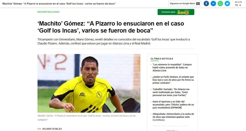 Hablar de Mario Gómez en el fútbol peruano es un cuadro infinito de nostalgia. Ha sido un personaje multifacético en el aspecto competitivo, con sus puntos altos, y también su lado negativo. Hoy por hoy, retirado de todos los males, se confiesa.
