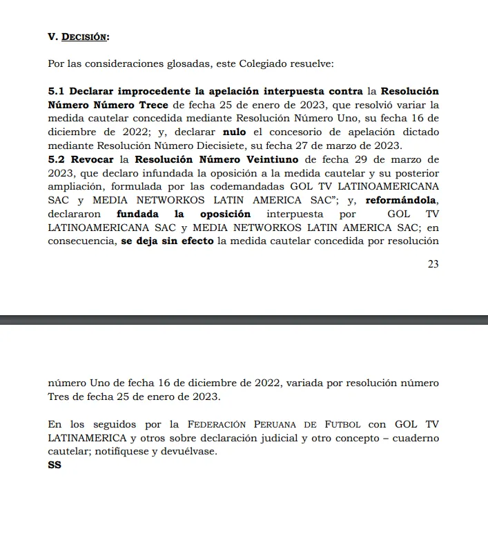 El Poder Judicial ordenó que quede sin efecto la medida cautelar interpuesta por la FPF sobre GOLPERU por los derechos de televisión de la Liga 1.
