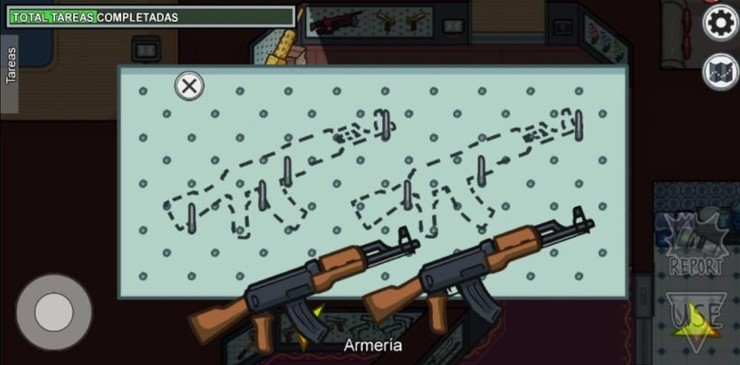 Toma las armas de las mesas y llévalas a las estanterías indicadas. Una vez allí, cuélgalas y completarás las tareas.