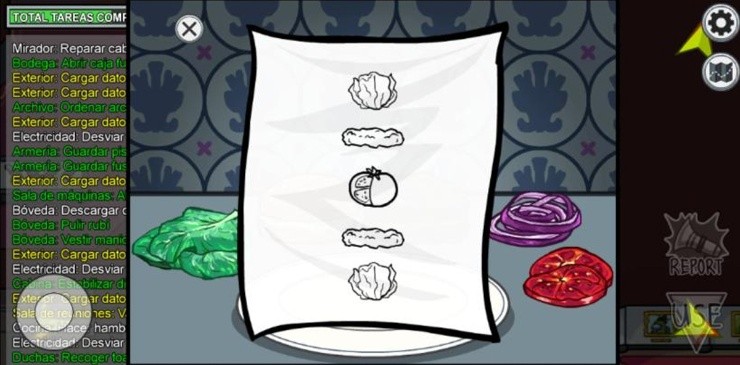 Tendrás una lista con los alimentos que deberás usar y el orden. Replícalo con los alimentos que aparecen en la mesa y completarás la tarea.