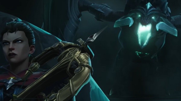 La cinemática nos muestra a Vayne luchando en los pasillos de Demacia contra espectros de la niebla negra, y ayudando a los guardias que puede. Sin embargo, todo explota cuando aparece Shyvana, consumida por la niebla en su aspecto “Arruinada”.