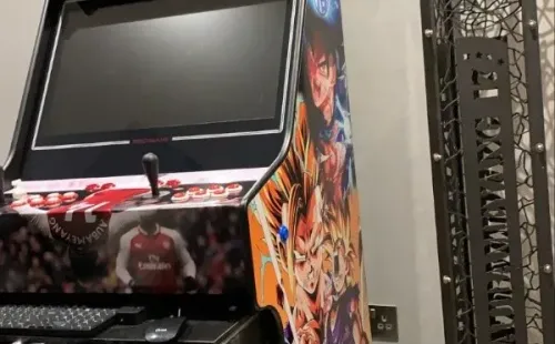 Aubameyang mostró una máquina de arcadeBricogame, que cuenta con juegos de la primera consola de Sony en ella. Pero no sólo eso, sino que está personalizada para él, y se pueden ver sus celebraciones de goles ocupando parte de la máquina, mientras que el costado cuenta con un diseño de Dragon Ball, su serie preferida.