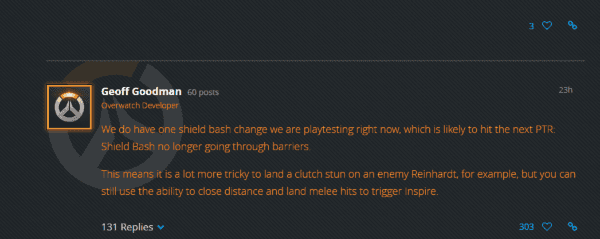 Uno de sus desarrolladores, GeoffGoodman, confirmó en los foros oficiales de Overwatch que Brigitte tendrá un nerfimportantísimo en la próxima versión.