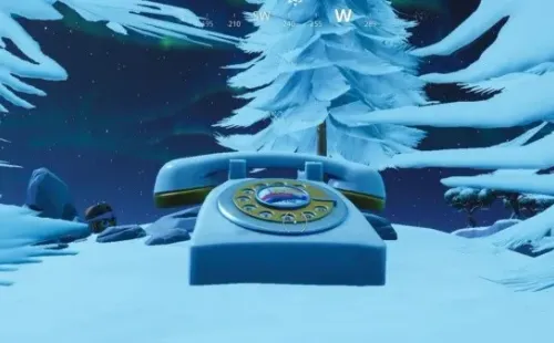 El teléfono de disco fue utilziado para un desafío en la pasada temporada y se encuentra en el límite del bioma nevado en una colina al oeste de Latifundio Letal entre varios árboles.
