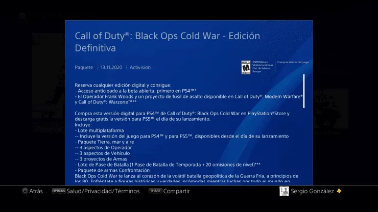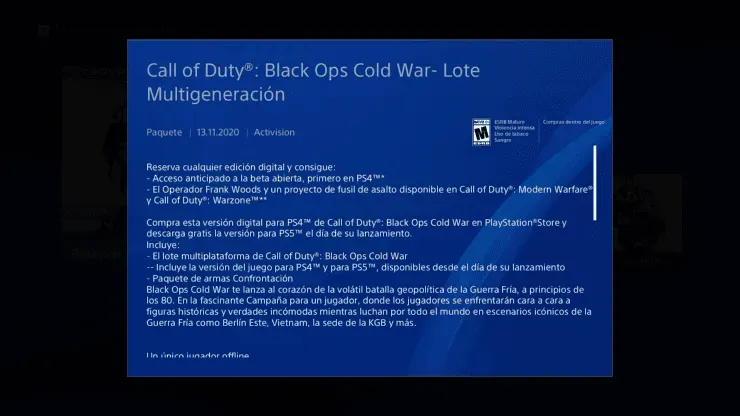 Call of Duty: Black Ops Cold War Edición Definitiva($89.99)