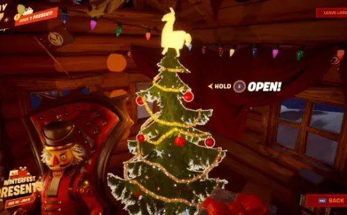 Lo primero que debes hacer para obtener LT. Evergreen es dirigirte a la cabaña de Festival de inverno en Fortnite, una vez que te encuentres allí, aprieta en los regalos a la izquierda de la pantalla.