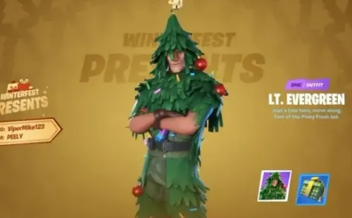 Fortnite lanzó ya su primera skin gratuita de Festival de invierno, se trata de un traje de rareza épica llamado LT Evergreen, donde se puede ver al personaje cubierto casi por completo, disfrazado de un árbol de Navidad. A continuación les explicamos como conseguirla: