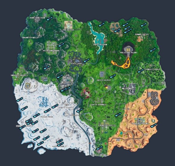 Esto te permite viajar 100m mucho más rápido, lo que reducirá las chances de ser disparado mientras intentas completar este desafío Boogie Down. Puedes encontrar una driftboard en las siguientes ubicaciones: