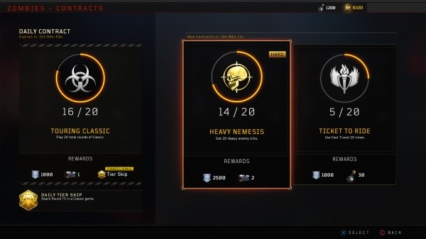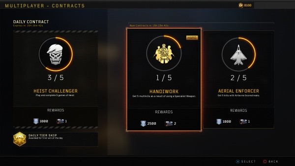 Los jugadores tendrán un Contrato Diario global junto a seis Contratos Activos de los cuales podrán elegir para completar en cada modo. Lo cual hace un totalde 25 contratos para completar en todo momento.