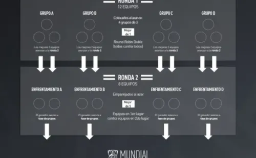 Worlds tiene tres fases: la Fase dePlay-In, la Fase de Grupos y la Fase Eliminatoria o de Playoffs(Cuartos de Final, Semifinales y la Final).